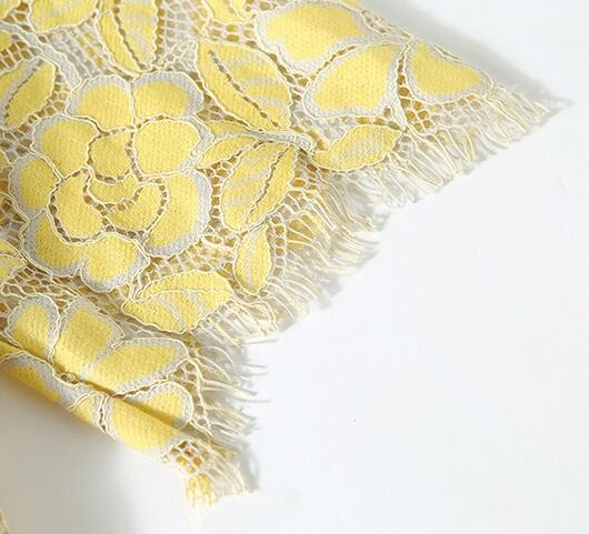 爽やかなカラーの総レースが華やかな膝下ワンピース。