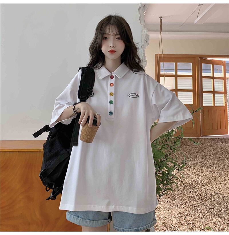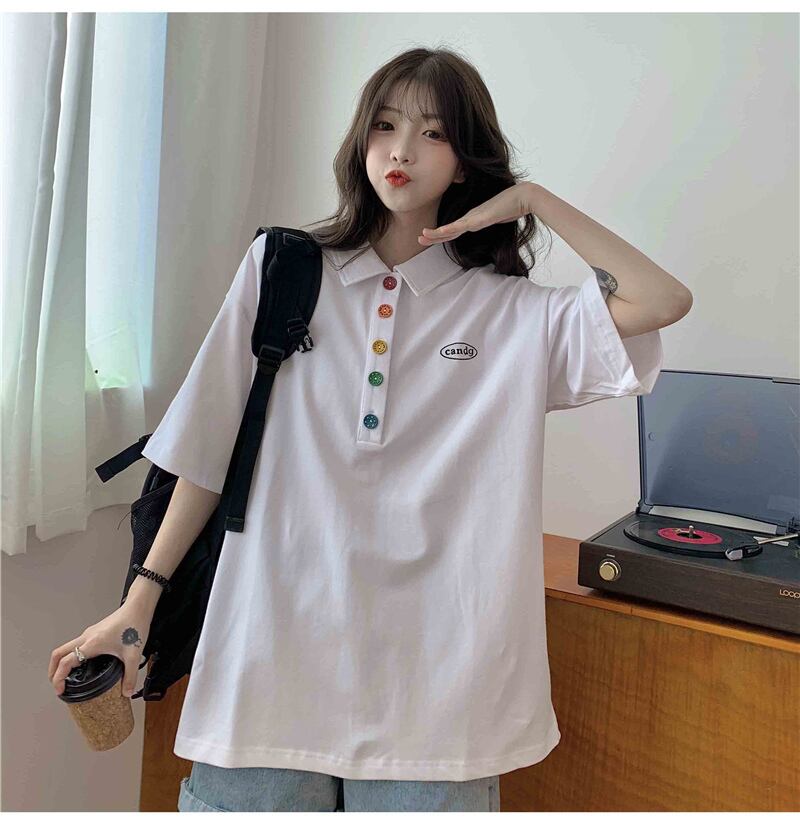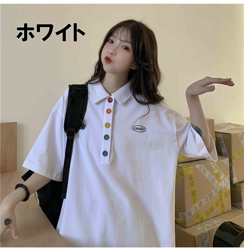 トップス シャツ レディース 送料無料 2色 カットソー 袖あり 半袖 襟付き カラフルボタン ワッペン 大人可愛い きれいめ シンプル 大人 上品 おしゃれ お洒落 エレガント 大きめ ビッグシルエット 白 ホワイト 緑 グリーン 水色 ブルー 黒 ブラック 無地 パステルカラー 春カラー 春 20代 30代 40代 50代 女性用 ママ オフィス ビジネス OL 通勤 着回し 普段使い ファッション コーデ スタイル モテ プレゼント ギフト 定番 プチプラ 安い 送料無料 流行 トレンド