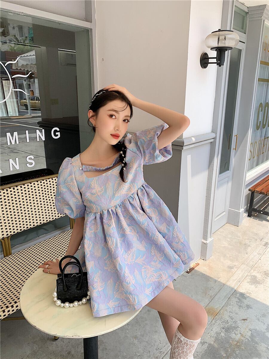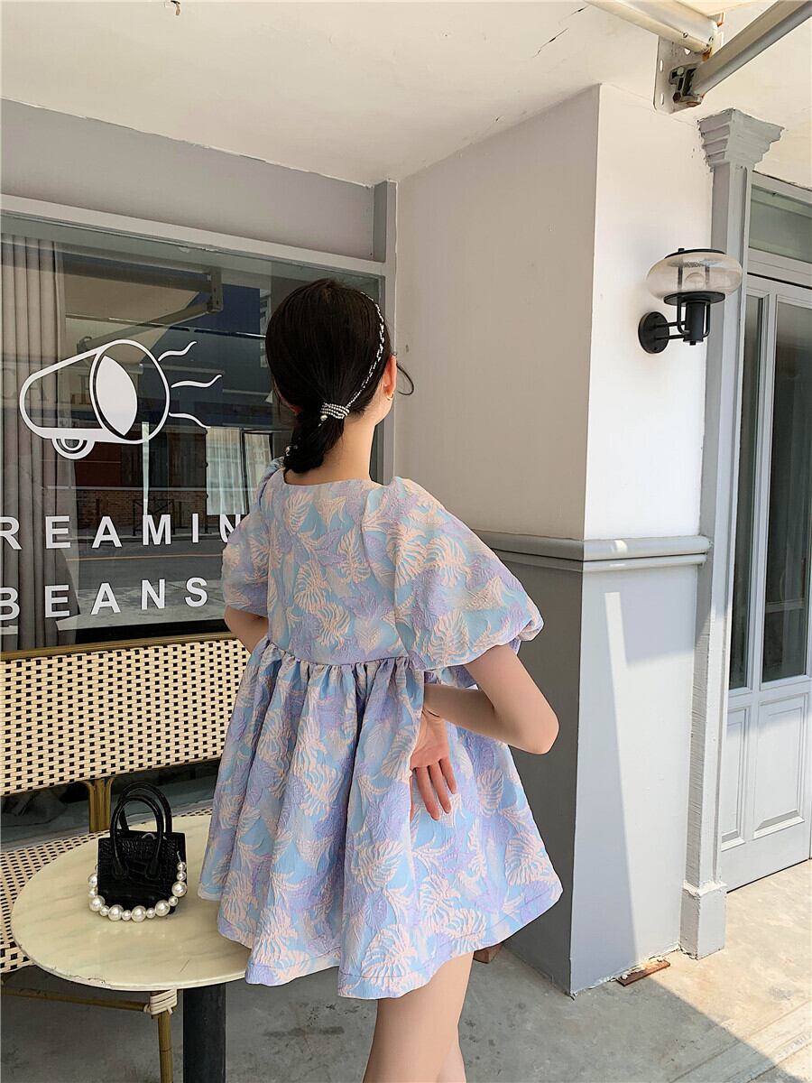 ワンピース レディース 送料無料 ミニワンピース フレアワンピース 半袖 ハイウエスト ショート丈 スクエアネック プランツ柄 リラックス おしゃれ ロマンチック ガーリー キュート かわいい こなれ感 スタイル 小顔見せ 着痩せ 体形カバー インスタ トレンド きれいめ エレガント カジュアル フリル ギャザー シャーリング ボリューム フレア 大人かわいい 上品 エンボス加工 ドール お人形 ふんわり パフスリーブ ボリュームスリーブ デート お出かけ ミニワンピース ミニドレス