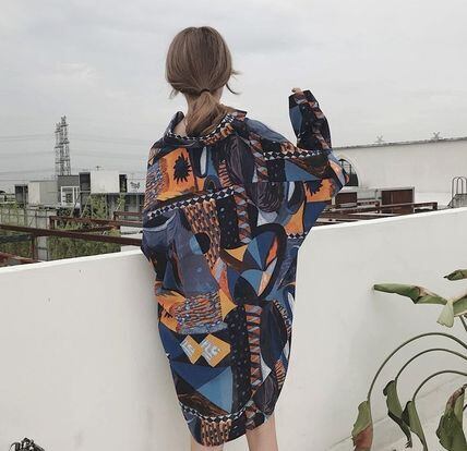 トップス レディース 送料無料 マルチカラ— 切り替え 長袖 幾何学模様 ビッグシルエット メンズライク マニッシュ ラージサイズ シャツワンピース トレンド ファッション ボリューム袖 バルーンスリーブ パフスリーブ ゆったり 大きめ ゆる 楽ちん きれいめ シンプル かわいい 可愛い カジュアル おしゃれ お洒落 こなれ感 抜け感 上品 エレガント 春 春服 夏 夏服 デート 通学 学生 お出かけ 普段使い 着回し 重ね着 無地 単色 体型カバー ブラック エレガント