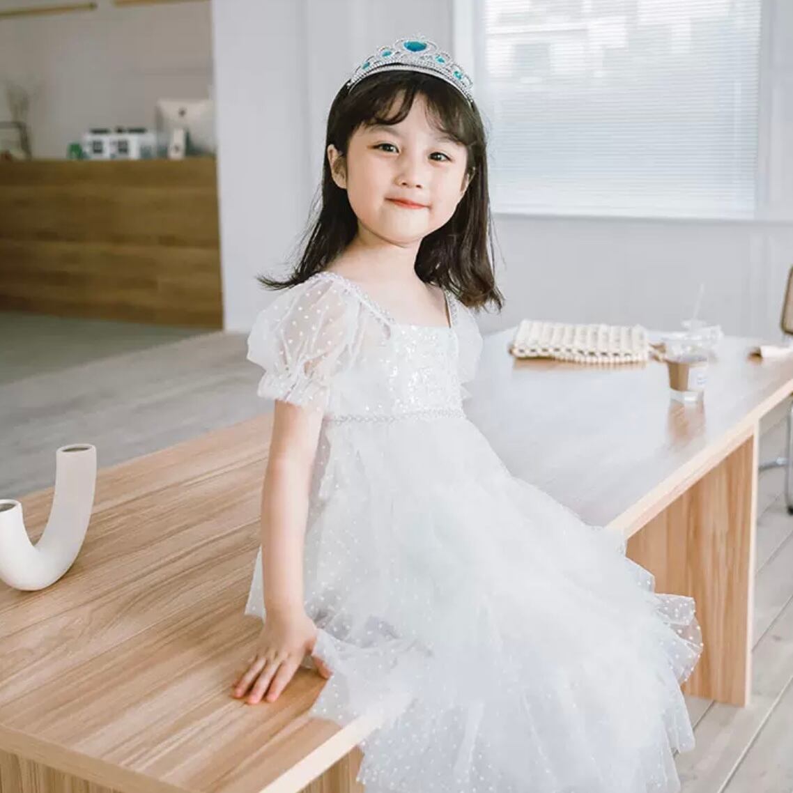 子供服 100〜150 ティアードドレス 半袖 パフスリーブ シースルー フレア ドット パール リボン 送料無料 子供 キッズコーデ キッズファッション キッズドレス キッズ 可愛い きれいめ エレガント クルーネック 春 夏 ガーリー お出かけ 外出 きれいめカジュアル 着回し ファッション デート コーディネート 重ね着 休日 特別な日 お祝い 記念日 カジュアル 普段着 春コーデ 夏コーデ 韓国 おしゃれ シンプル ゆったり 韓国ファッション ワンポイント コーデ 演奏会 発表会 パーティドレス