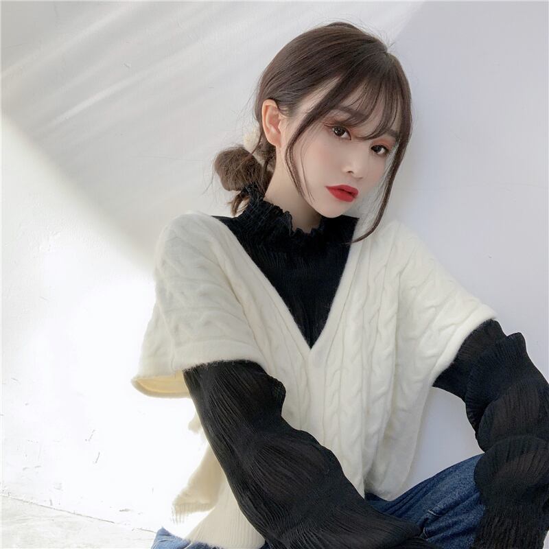 トップス レディース 送料無料 3色 ベスト ワンピース ベスト ニット Vネック ケーブルニット ベーシック クロップ丈 ショート スリット おしゃれ スタイル 着痩せ 体形カバー インスタ トレンド きれいめ かわいい エレガント かっこいい ナチュラル コットン 綿 ゆったり ゆる リラックス リゾート 旅行 お出かけ オフィス OL 通勤 大人かわいい ホワイト 白 シャツ S M L XL 2XL バックスリット 上品 着回し メンズライク ユニセックス ジッパースリット