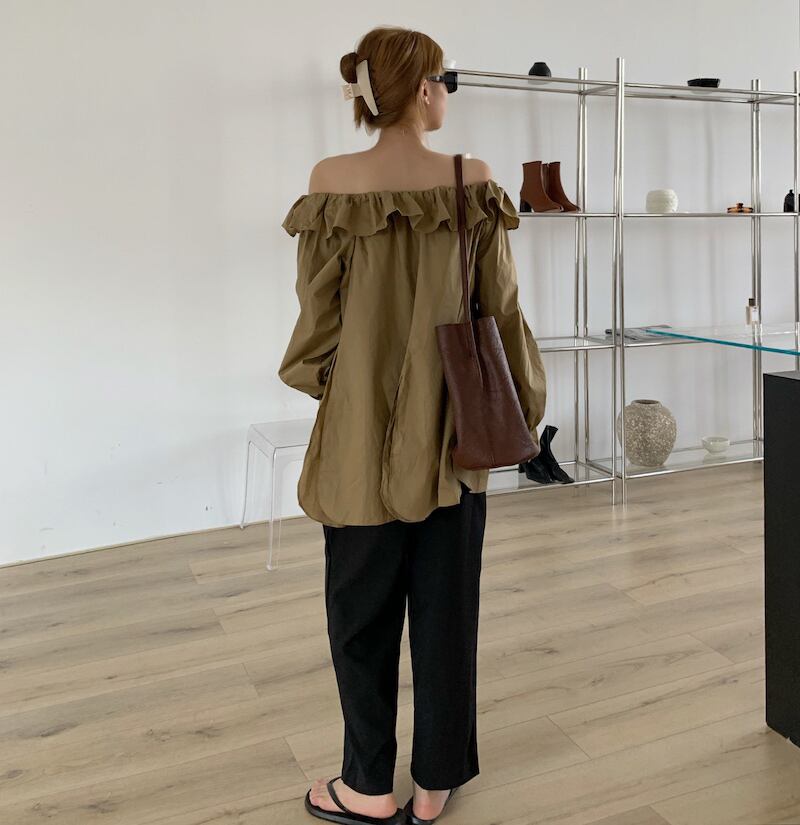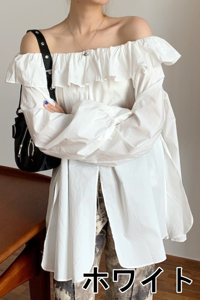 トップス レディース 送料無料 3色 2wayフリルブラウス フリル襟 チュニック オフショルダー 長袖 アレンジ リラックス リゾート おしゃれ かわいい かっこいい ラフ ゆったり こなれ感 スタイル 小顔見せ 着痩せ 体形カバー インスタ トレンド きれいめ エレガント ベージュ ホワイト ブラック ルーズ カジュアル キュート フリル ギャザー シャーリング ゆったり フレア 大人かわいい 上品 ゆる ドレープ ブラウス 無地 シンプル スリット