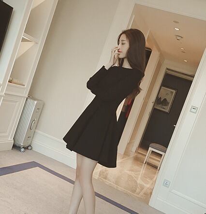 ワンピース レディース 送料無料 フレアワンピース フレア フィットアンドフレア タイト ファスナー クルーネック 長袖 ハイウエスト 体型カバー 脚長 ミニ丈 ショート丈 膝上 黒色 ブラック 無地 単色 パーティー おでかけ 冠婚葬祭 大きいサイズ ビッグサイズ プラスサイズ S M L XL 2XL 3XL 4XL きれいめ 上品 エレガント 大人可愛い かわいい シンプル フェミニン お洒落 おしゃれ こなれ感 抜け感 春服 秋服 10代 20代 普段使い オルチャン ファッション 新作 2021