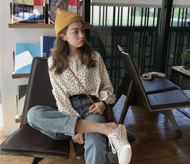 トップス レディース 送料無料 ブラウス シャツ ワイシャツ ドット柄 水玉模様 ワイド ゆったり ゆる 大きめ ビッグシルエット オーバーシルエット パフスリーブ ランタンスリーブ バルーンスリーブ ボリューム袖 前開き フロントボタン 丸首 ラウンドネック レース かわいい 可愛い ガーリー キュート カジュアル おしゃれ お洒落 きれいめ 大人女子 こなれ感 抜け感 フェミニン アイボリー 白系 春服 秋服 10代 20代 30代 普段使い 着回し 重ね着 定番 韓国 オルチャン 新作 2021