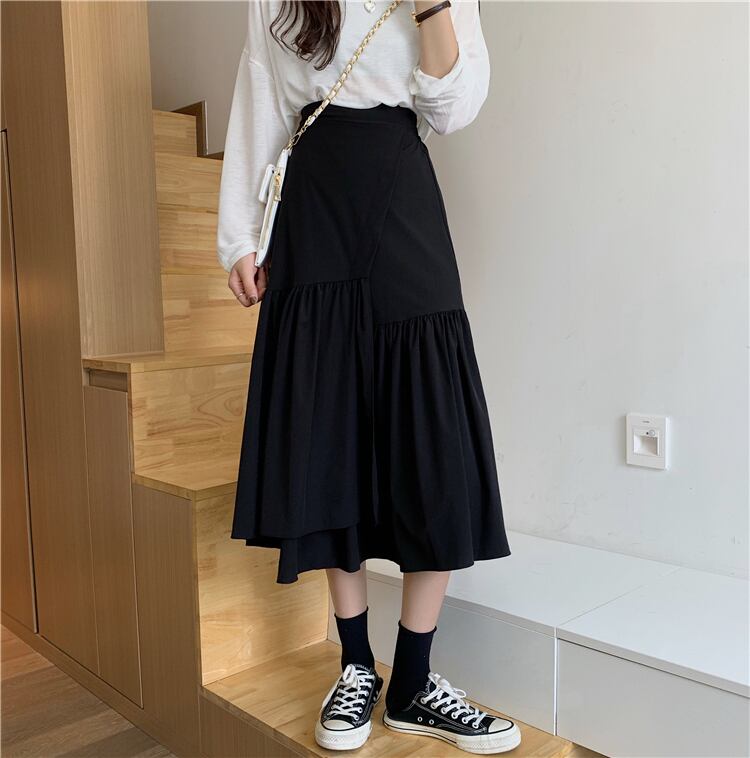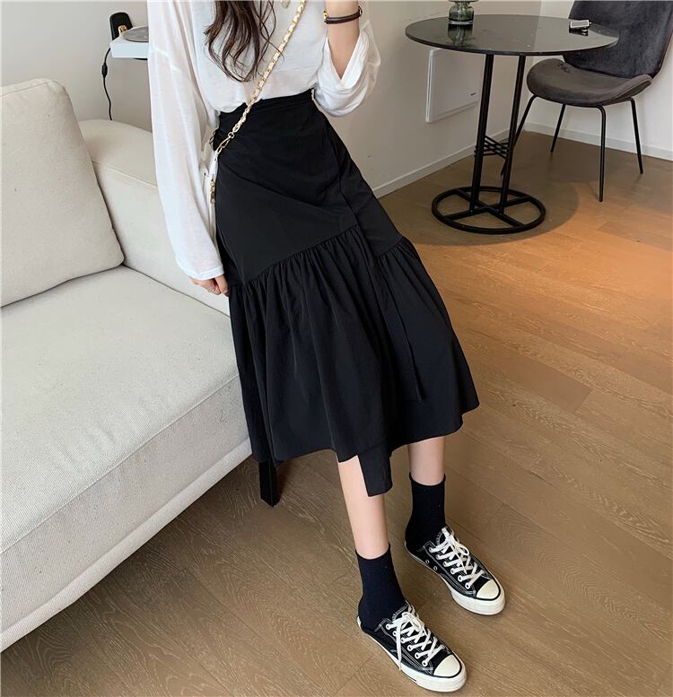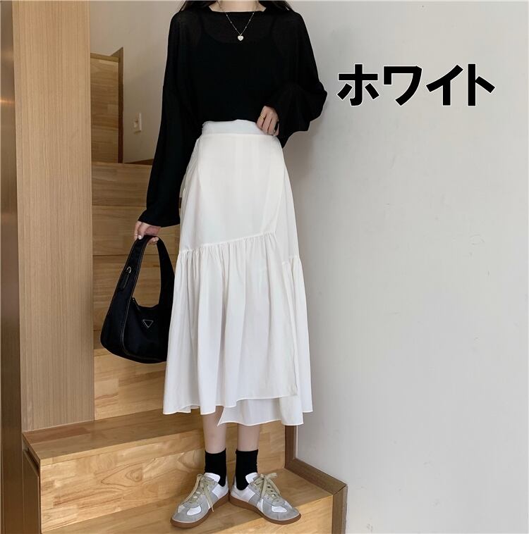 アシンメトリー裾がモダンな雰囲気を演出するスカート。