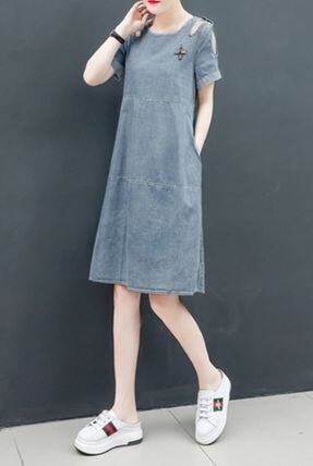 ワンピース レディース 送料無料 フレアワンピース デニムワンピース オープンショルダー 半袖 7分袖 ラウンドネック ビジュー ビーズ 刺繍 セミフレア レース ウエストマーク ハイウエスト デニム かわいい 大人可愛い きれいめ シンプル カジュアル 上品 おしゃれ レトロ アジアン 大人女子 こなれ感 ラブリー キュート ガーリー エレガント 存在感 M L XL 2XL ゆったり 青 ブルー ボタニカル 春 夏 秋 10代 20代 30代 ママ デート イベント 普段使い 韓国 体系カバー