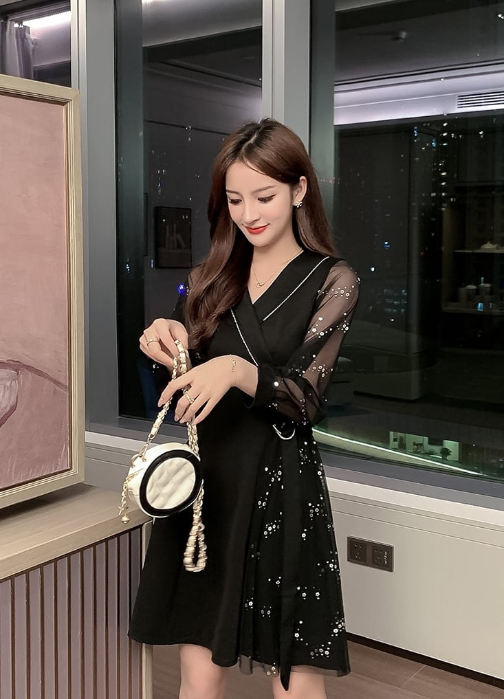 ワンピース レディース 送料無料 ミニ丈 ショート丈 膝上 フレアスカート シフォン Vネック サープリスネック カシュクールワンピース 長袖 ロングスリーブ パフスリーブ 透け感 黒 ブラック Aライン フィットアンドフレア パーティードレス パーティー衣装 披露宴 謝恩会 おでかけ 可愛い かわいい こなれ感 抜け感 お洒落 おしゃれ 大人可愛い 大人女子 ラブリー ガーリー キュート 春服 秋服 10代 20代 普段使い 特別な日 韓国 オルチャン ファッション イベント プチプラ 新作 2021