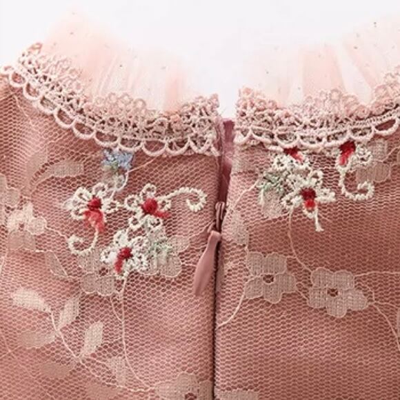 フリル装飾のチュールドレス