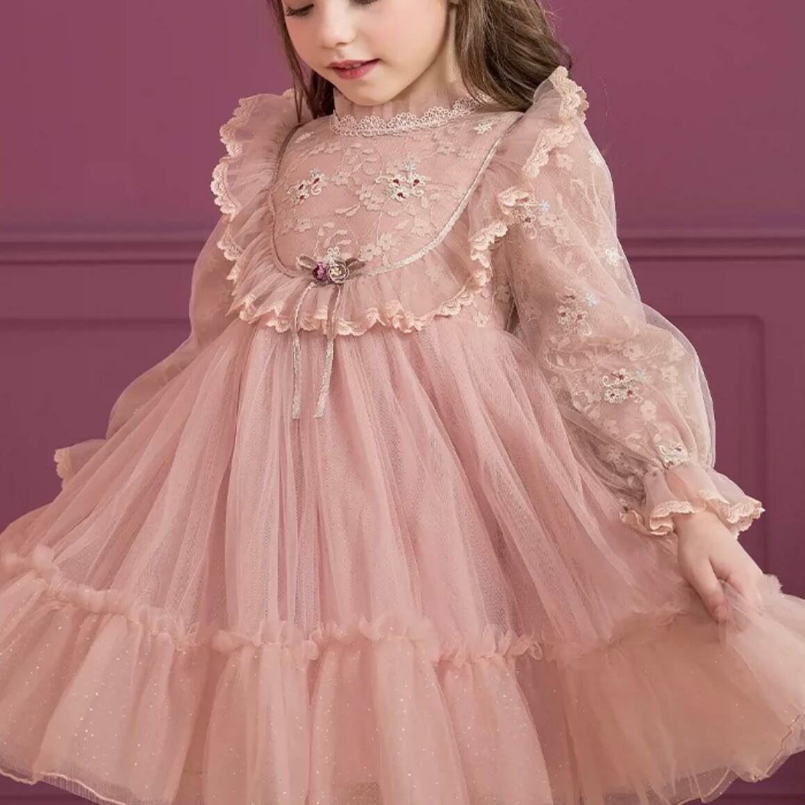 2色 子供服 100〜140 レース パフスリーブ ティアードドレス フリル 花 送料無料 チュール リーフ 子供 キッズコーデ キッズファッション キッズドレス キッズ 可愛い きれいめ エレガント クルーネック 春 冬 秋 ガーリー 韓国系 お出かけ 外出 きれいめカジュアル 着回し ファッション デート コーディネート 重ね着 休日 特別な日 お祝い 記念日 春コーデ 秋コーデ 冬コーデ おしゃれ シンプル ゆったり 韓国ファッション ワンポイント コーデ 演奏会 発表会 パーティドレス パーティー