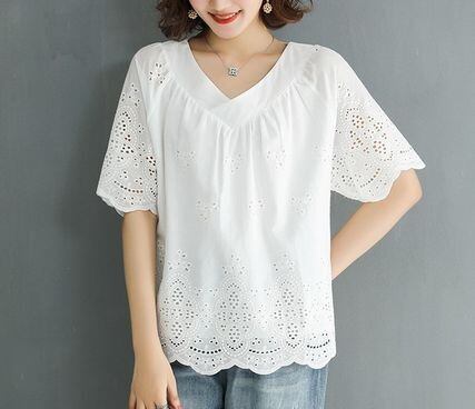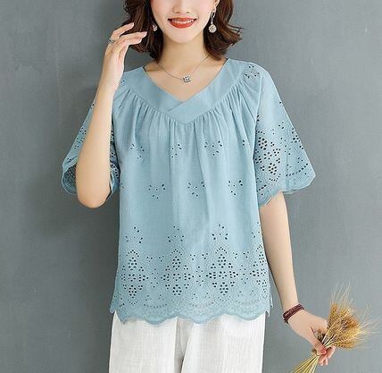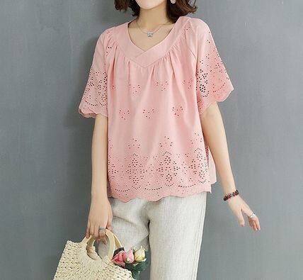 繊細な総パンチングレースのフェミニンブラウスです。