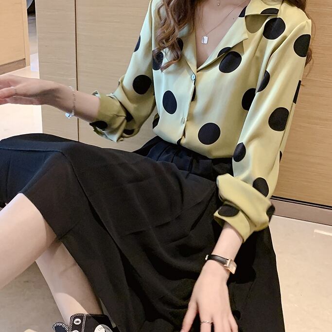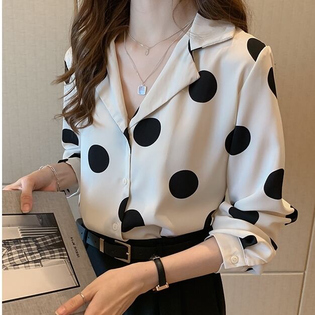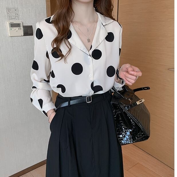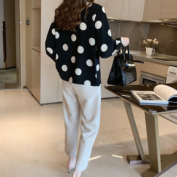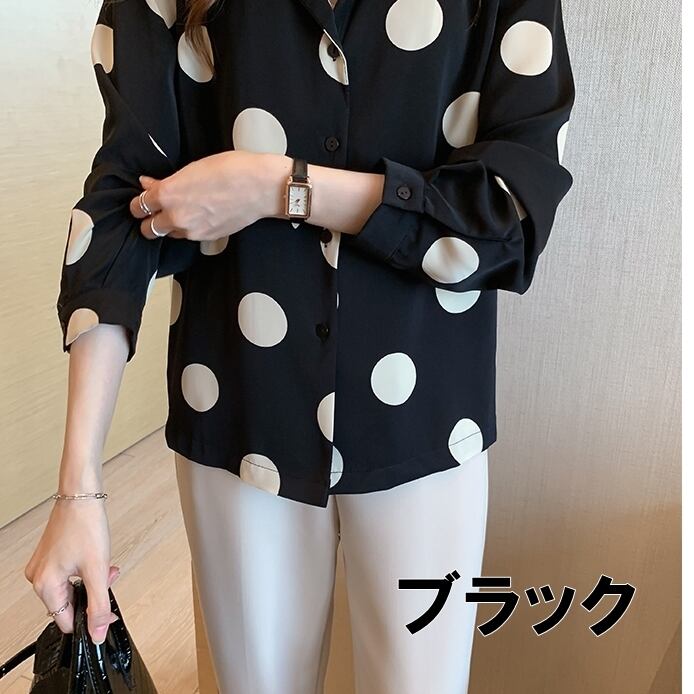 トップス レディース 送料無料 3色 開襟シャツ ブラウス シャツ ワイシャツ ドット柄 水玉模様 ワイド ゆったり ゆる 大きめ ビッグシルエット オーバーシルエット パフスリーブボリューム袖 前開き フロントボタン 丸首 ラウンドネック レース かわいい 可愛い ガーリー キュート カジュアル おしゃれ お洒落 きれいめ 大人女子 こなれ感 抜け感 フェミニン アイボリー 白系 春服 秋服 10代 20代 30代 普段使い 着回し 重ね着 定番 韓国 オルチャン 新作 2021