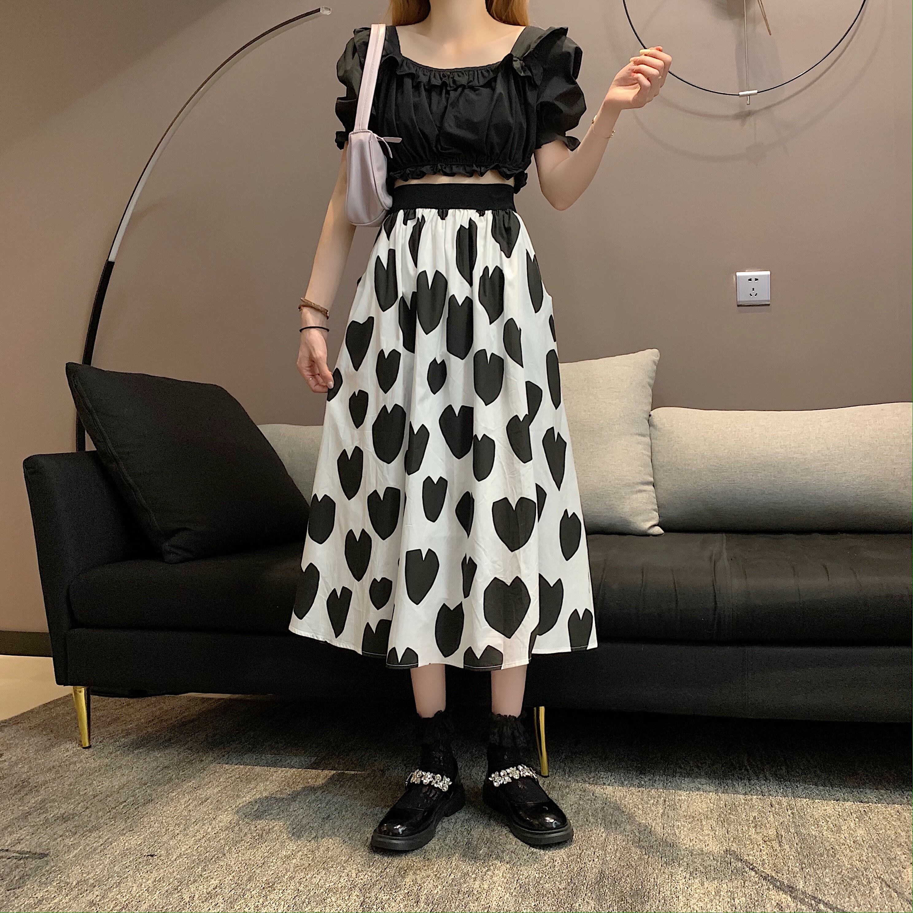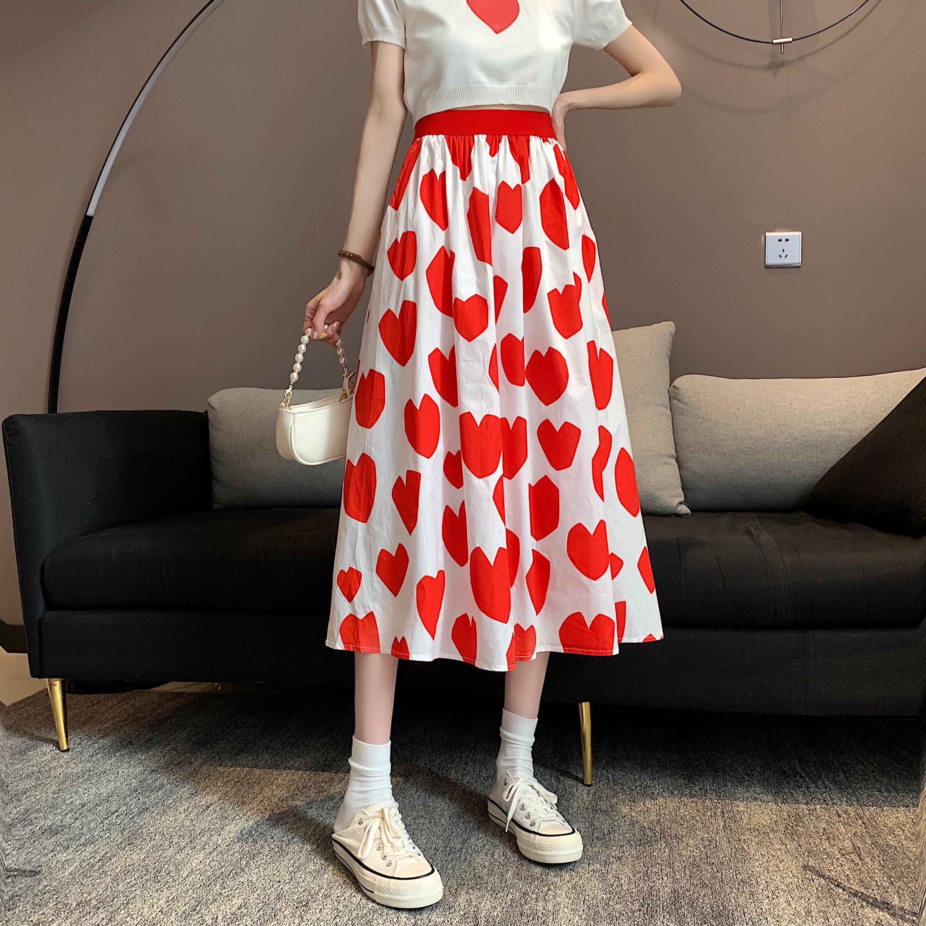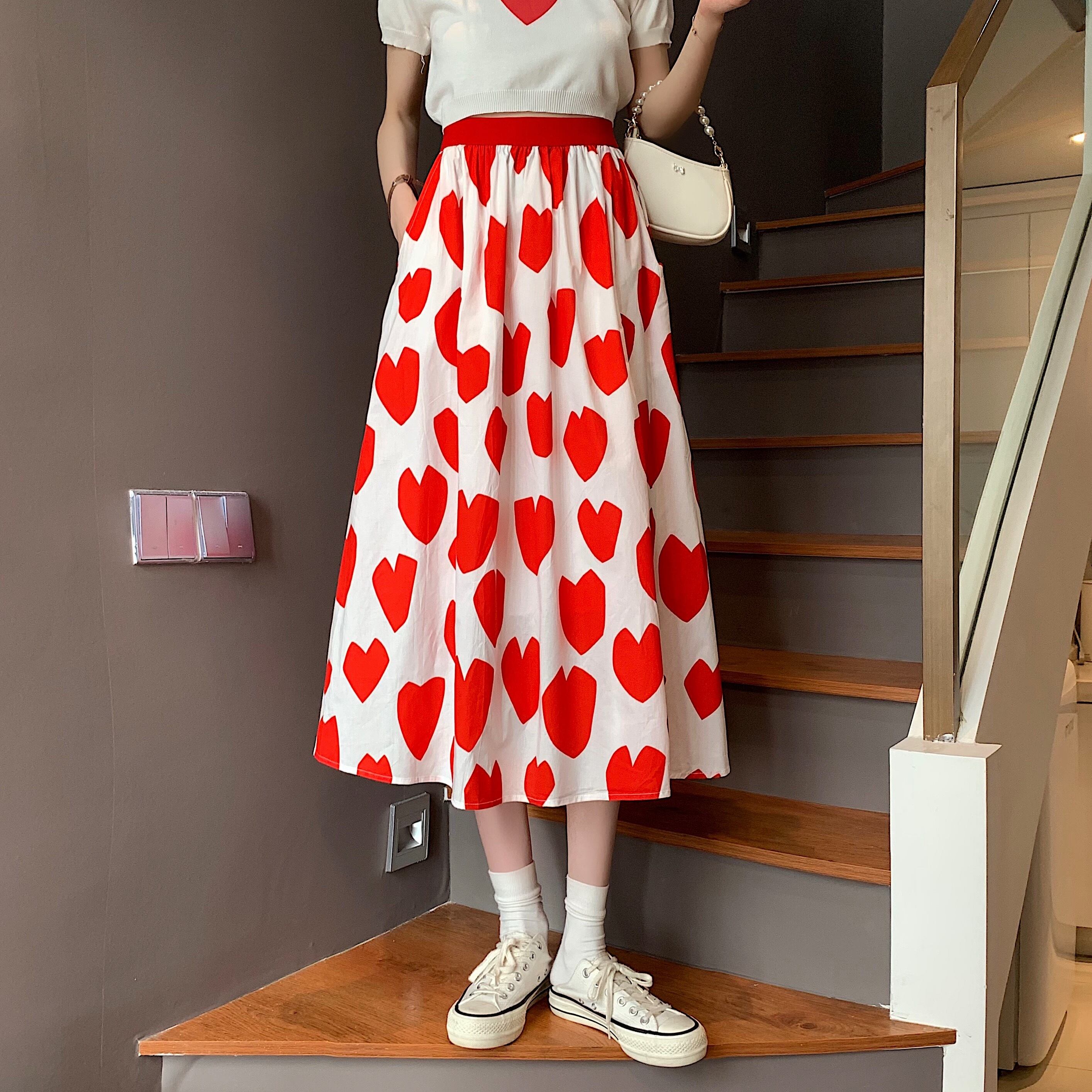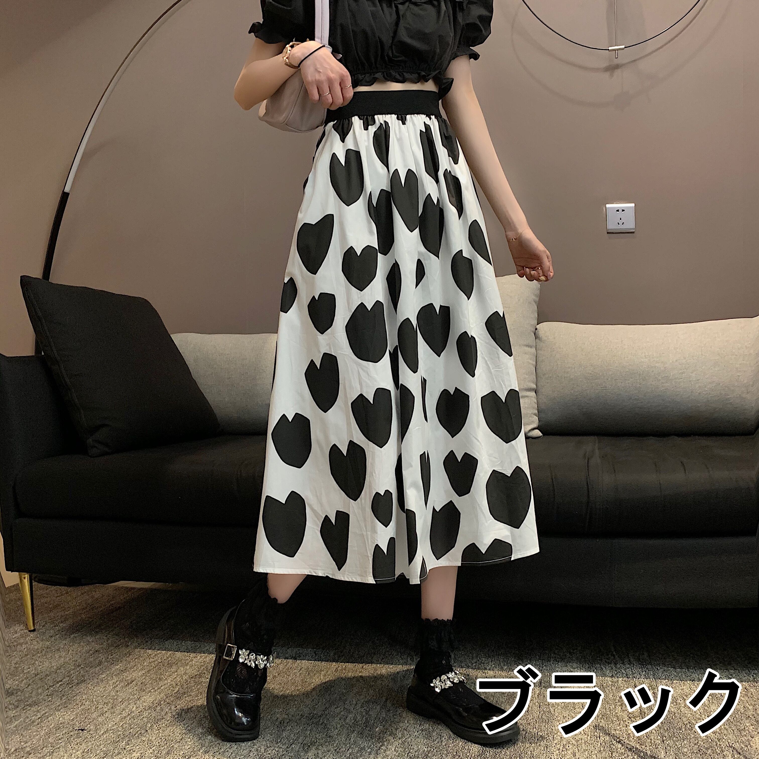 スカート レディース 送料無料 2色 ハートプリントスカート フレアスカート Aラインスカート ロングスカート ミモレ丈 ギャザースカート ウエストゴム レッド ブラック おしゃれ ロマンチック ガーリー キュート ハート柄 ラブリー かわいい こなれ感 スタイル 小顔見せ 着痩せ 体形カバー インスタ トレンド きれいめ エレガント カジュアル ギャザー シャーリング ボリューム フレア 大人かわいい 上品 ドール お人形 ふんわり デート テーマパーク コスプレ イベント お出かけ