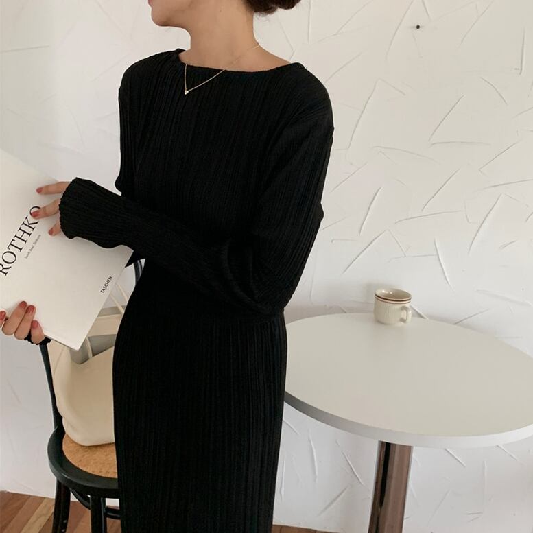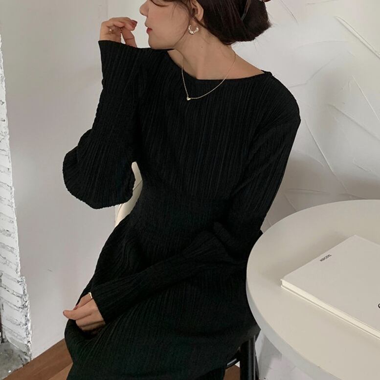 細プリーツワンピース レディース 送料無料 ランダムプリーツワンピース ウエストマークワンピース シャイニープリーツワンピース ワンピース ドレス dress ブラックドレス ひざ下 ミモレ ロング丈 長袖 ボートネック スリム プリーツ エレガント 大人可愛い きれいめ 華やか 上品 レトロ クラシック 黒 ブラック オケージョン 二の腕カバー 高見え 格上げ 春夏 秋冬 大人 かわいい おしゃれ 普段使い デイリー お呼ばれ お出かけ デート オフィス パーティー 二次会 フォーマル トレンド