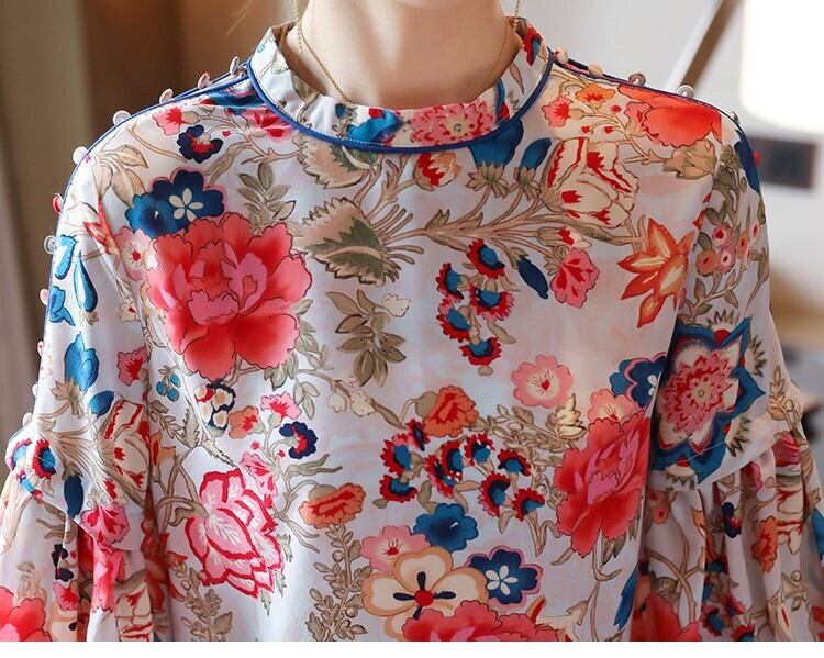 トップス ブラウス シャツ レディース 送料無料 袖あり 長袖 ボリューム袖 パフスリーブ ラウンドネック シフォン かわいい 大人可愛い きれいめ 大人 上品 おしゃれ 大人女子 こなれ感 ラブリー キュート ガーリー エレガント モダン 存在感 フォーマル とろみ感 S M L XL 2XL 赤 レッド 大人カラー 春カラー 花柄 フラワー ボタニカル 春 夏 秋 冬 20代 30代 オフィス ビジネス OL デート お出かけ 女子会 イベント リゾート 着回し 普段使い 体系カバー インスタ映え