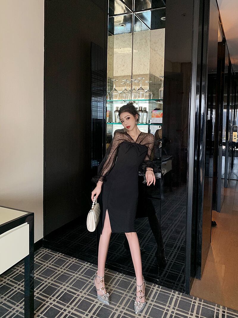 ワンピース ドレス ワンピドレス レディース 送料無料 ひざ丈 膝上 膝下 袖あり 長袖 フレアスリーブ Vネック スリム タイト 細身 ストレート チュール リボン サイドスリット ハイウエスト 透け感 シースルー かわいい 大人可愛い きれいめ シンプル 上品 おしゃれ 大人女子 こなれ感 ラブリー キュート ガーリー モード系 セクシー エレガント モダン フォーマル 抜け感 S M L 黒 ブラック ドット柄 水玉 春 夏 10代 20代 お出かけ 女子会 パーティー イベント 美脚 インスタ映え