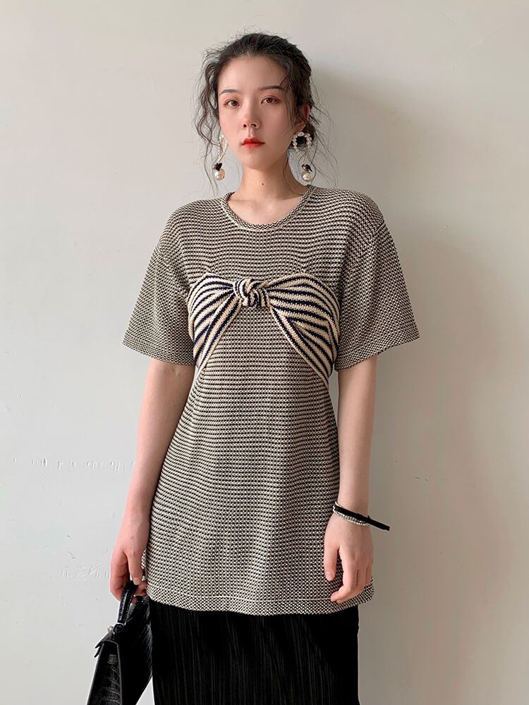 トップス レディース 送料無料 デザインTシャツ 半袖 クロスリボンTシャツ おしゃれ スタイル 小顔見せ 着痩せ 体形カバー インスタ トレンド フェミニン きれいめ かわいい コットン 綿 ストライプ 縞 ボーダー キュート 女子会 エレガント フェミニン ブラック こなれ感 シンプル リボン かっこいい お出かけ アクティブ かっこいい クルーネック ラウンドネック ティーシャツ ガーリー ロマンチック モノトーン