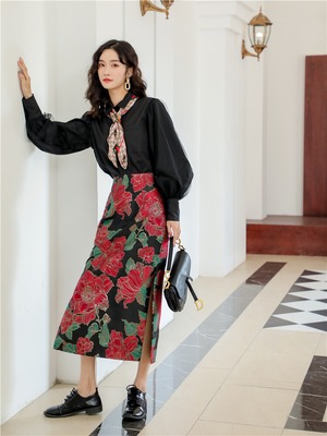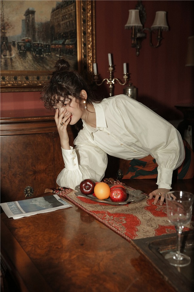 袖のチュールが柔らかい雰囲気でエレガントなパフスリーブブラウス。