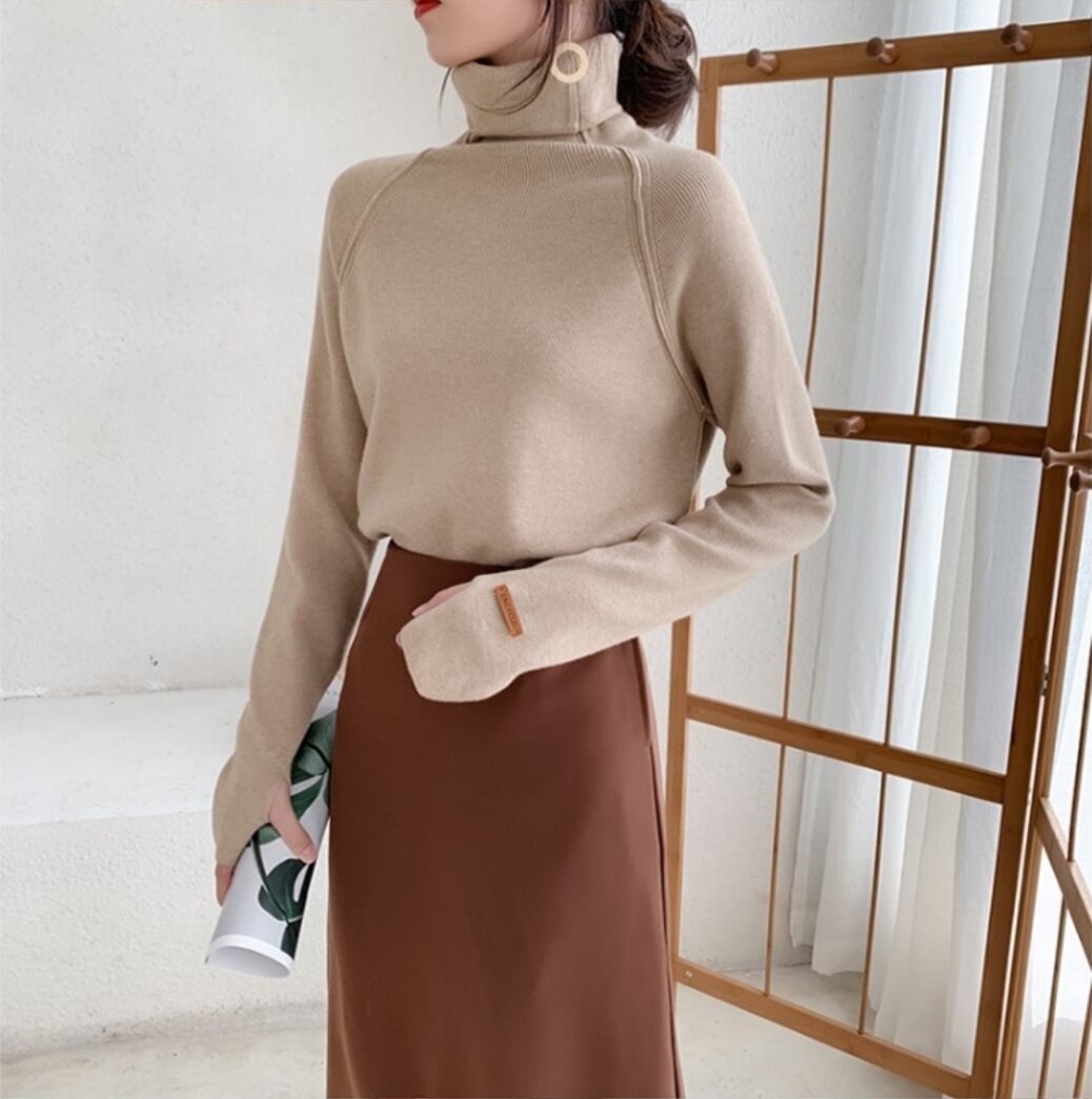 トップス レディース 送料無料 5色展開 ニット セーター 無地 単色 タートルネック 長袖 ラグランスリーブ ラグラン袖 エクストラロングスリーブ サムホール 指穴 カットソー 暖か あったか 大人可愛い フェミニン かわいい こなれ感 きれいめ シンプル カジュアル 上品 ラフ おしゃれ お洒落 大人女子 フリーサイズ 伸縮性 フィット感 ブラウン 茶色 ブルー 青色 イエロー 黄色 ブラック 黒色 ホワイト 白色 春服 秋服 肌寒い日 20代 30代 40代 普段使い おでかけ 着回し 重ね着