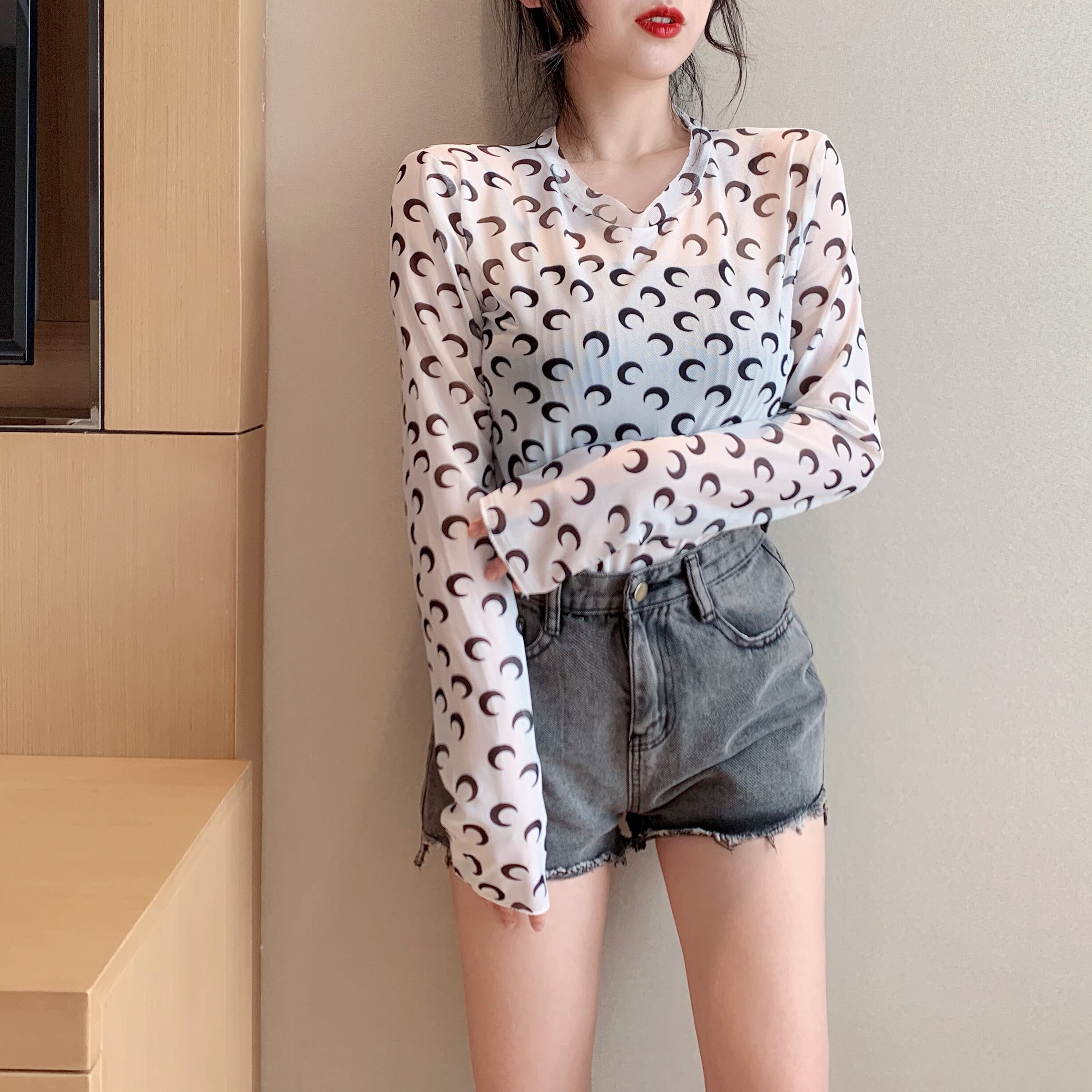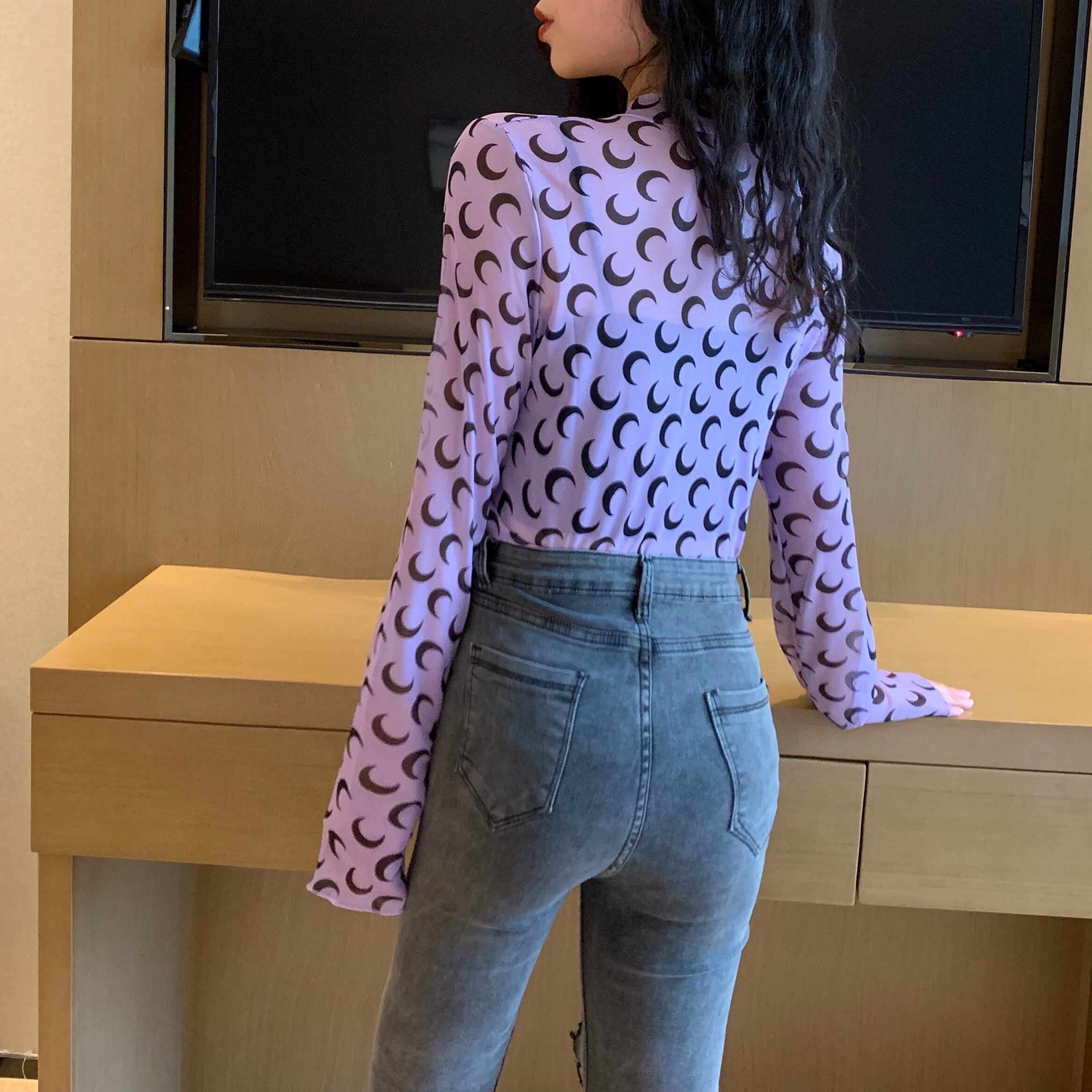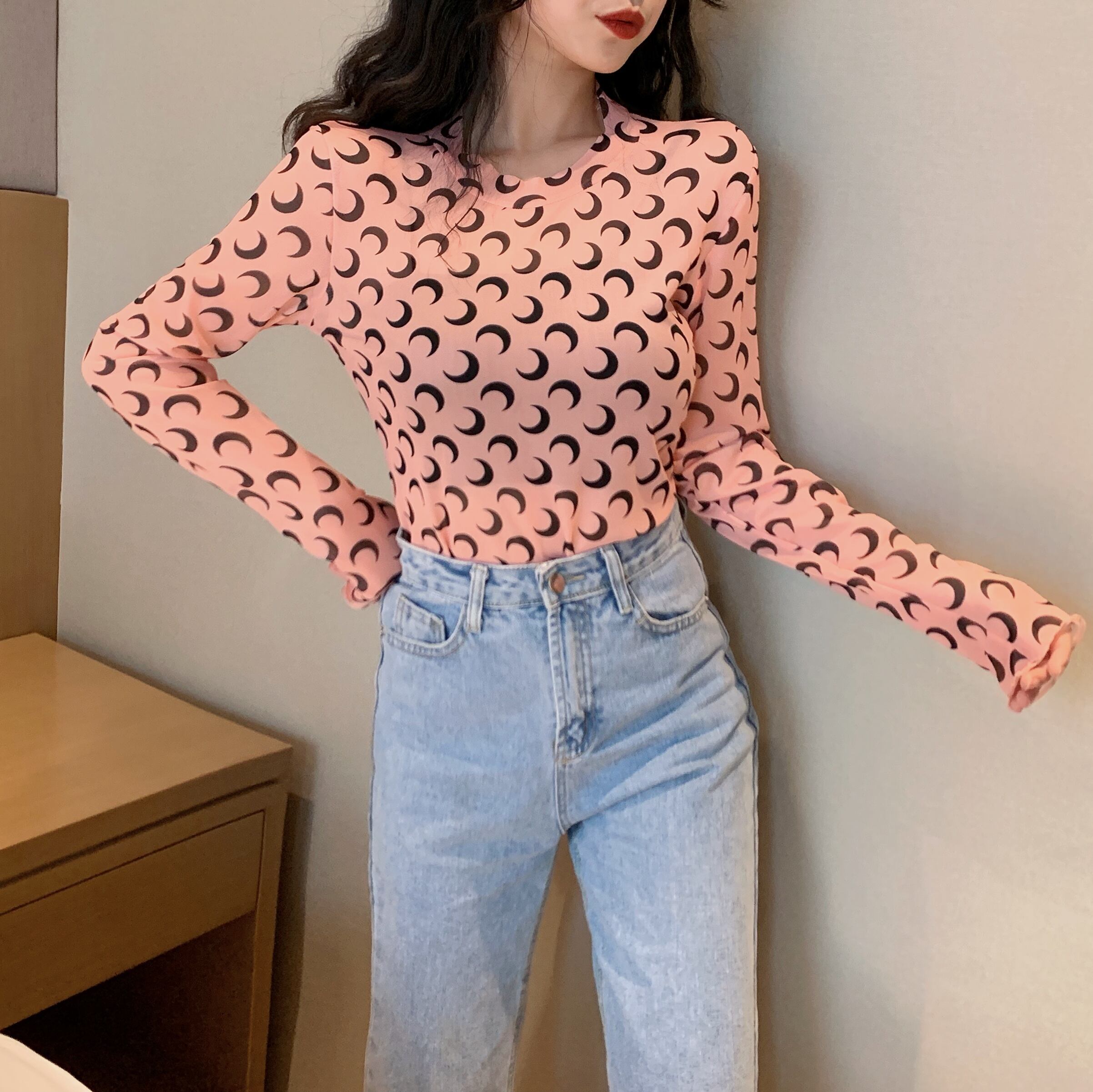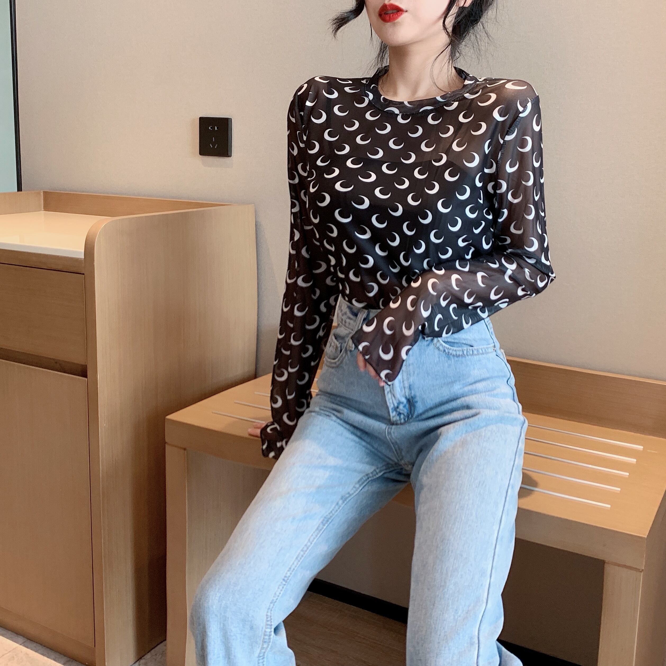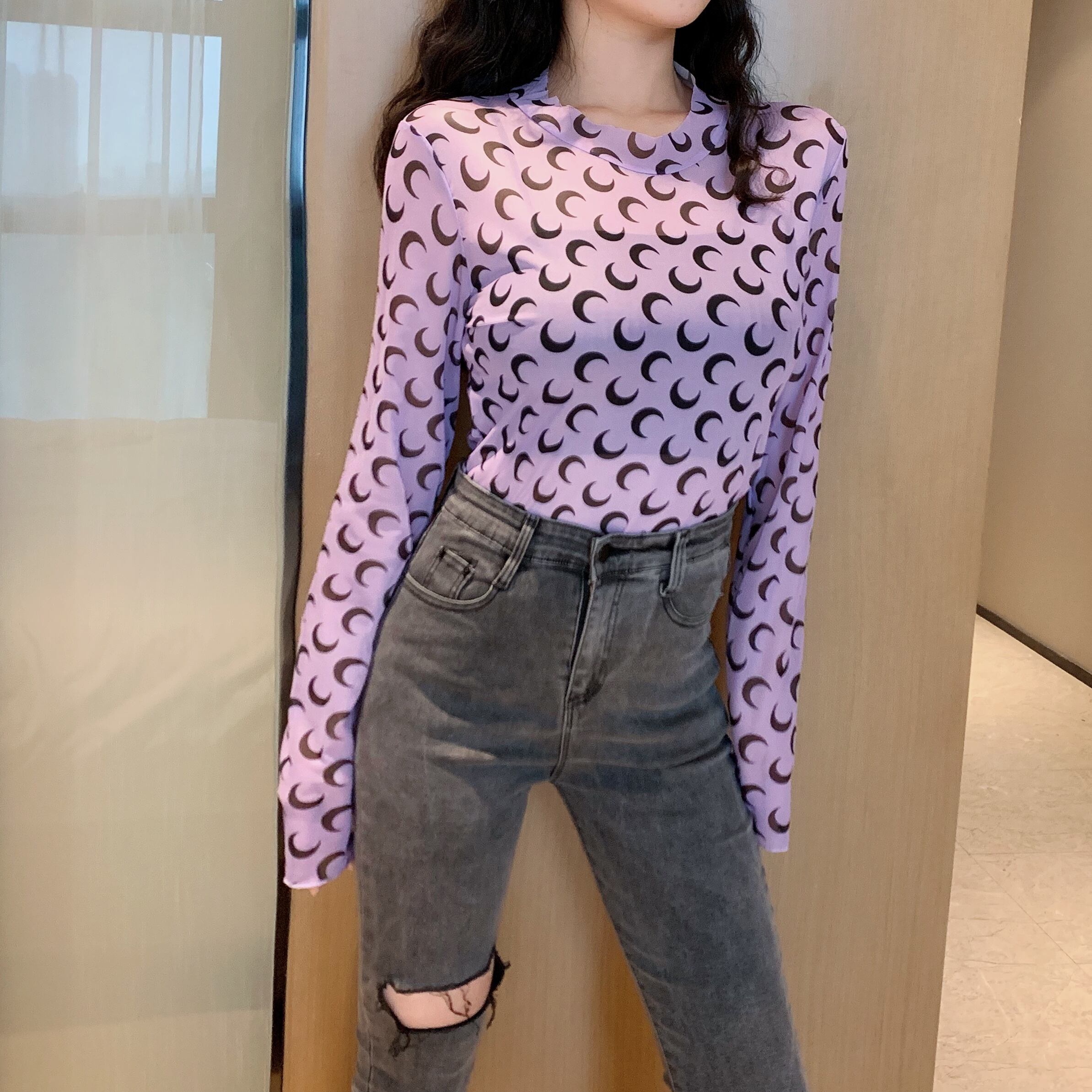 トップス レディース 送料無料 5色展開 ロングTシャツ シアー プルオーバー カットソー シャツ 薄手 グリーン 緑色 ピンク ブラック 黒色 ホワイト 白色 パープル 紫色 可愛い かわいい カジュアル シンプル ラフ フィット感 おしゃれ お洒落 大人女子 こなれ感 抜け感 キュート ラブリー 柄物 ムーン フリーサイズ 伸縮性 普段使い 重ね着 着回し デート おでかけ 韓国 オルチャン ファッション コーデ 10代 20代 30代 春服 夏服 秋服 冬服 オールシーズン シーズンレス プリント