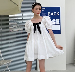 ワンピース レディース 送料無料 ミニワンピース スクエアネック トラペーズネック リボン バックコンシャス フレアワンピース 半袖 ハイウエスト ショート丈 おしゃれ ロマンチック 花柄 ガーリー キュート かわいい こなれ感 スタイル 小顔見せ 着痩せ 体形カバー インスタ トレンド きれいめ エレガント カジュアル フリル ギャザー シャーリング ボリューム フレア 大人かわいい 上品 ドール お人形 ふんわり パフスリーブ デート お出かけ ミニワンピース ミニドレス 襟付き