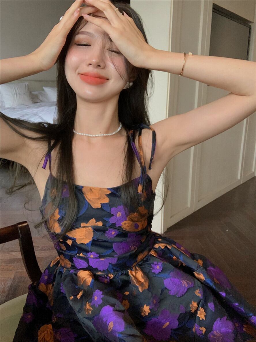 華奢な肩紐が可愛いノースリーブティアードワンピースです。