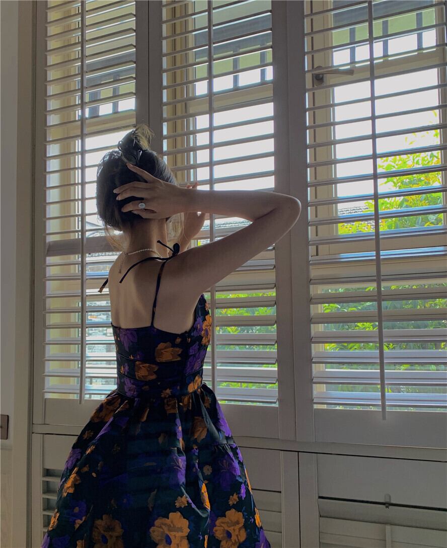 大きな花柄がシックで一枚でもレイヤードでキュートに着こなすのも◎