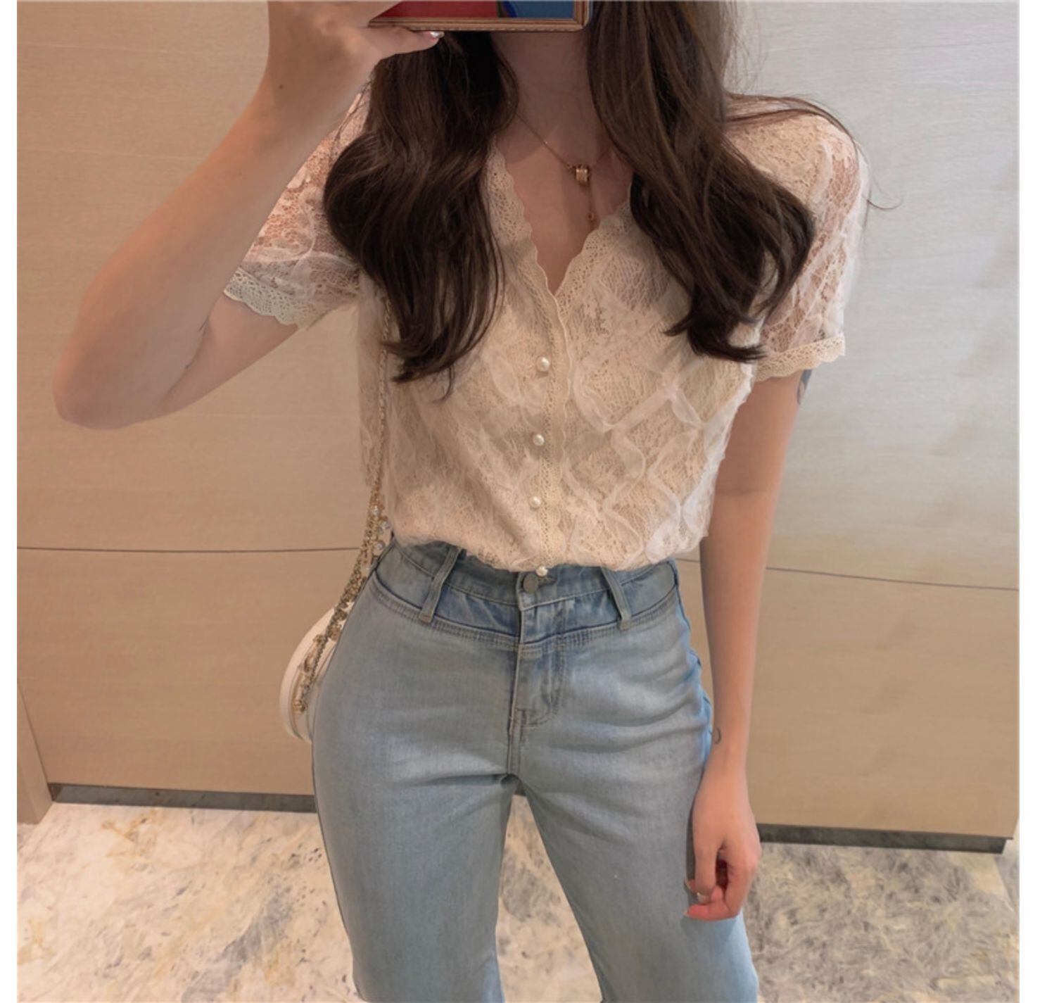トップス レディース ラブリー レースブラウス ブラウス ラブリーブラウス Vネックレースシャツ VネックV ネックブラウス ボタン 半袖 上品 エレガント ベージュ 無地 S M L 韓国 韓国ファッション オルチャンお出かけ デート 女子会 通勤 通学 学生 日常 前あきス トレート 10代 20代 30代 ビジネス オフィス ファッション 春 夏 重ね着 普段使い 着回し 送料無料