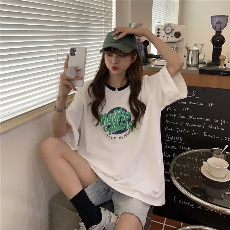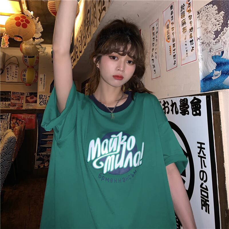 トップス レディース 送料無料 3色展開 Tシャツ シャツ カットソー プルオーバー ラウンドネック 丸首 ドロップショルダー 半袖 五分袖 5分袖 ワイド オーバーサイズ ビッグシルエット オーバーシルエット ゆったり ゆる 大きめ 楽ちん 体型カバー 二の腕カバー ビッグサイズ XL 2XL 3XL 4XL ホワイト グリーン グレー カジュアル ラフ おしゃれ お洒落 マニッシュ ボーイッシュ ロゴ 10代 20代 30代 着回し 普段使い 重ね着 おでかけ デート 夏服 春服 秋服 2021