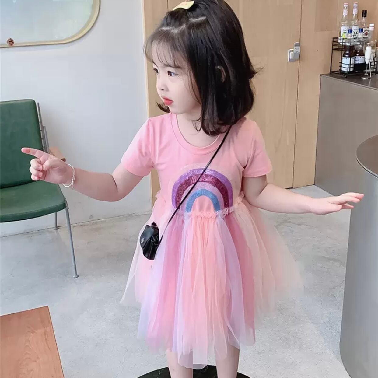 3色 子供服 90〜130 チュールドレス ワンピース フレアスカート 半袖 レインボー シースルー 送料無料 キッズコーデ キッズファッション キッズドレス キッズ 可愛い きれいめ エレガント クルーネック 春 夏 ガーリー お出かけ 外出 きれいめカジュアル 着回し ファッション デート コーディネート 重ね着 休日 特別な日 お祝い 記念日 カジュアル 普段着 春コーデ 夏コーデ 韓国 おしゃれ シンプル ゆったり 韓国ファッション ワンポイント コーデ リゾート 旅行 パーティー パーティドレス