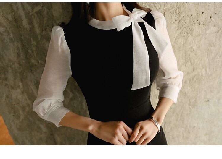 ワンピース ドレス ワンピドレス レディース 送料無料 ひざ丈 膝下 袖あり 5分袖 ラウンドネック 裾フレア シフォン リボン 透け感 シースルー かわいい 大人可愛い きれいめ シンプル 上品 おしゃれ 大人女子 こなれ感 ラブリー キュート ガーリー エレガント モダン 存在感 フォーマル 抜け感 S M L XL 白 ホワイト 黒 ブラック モノトーン 無地 春 夏 秋 冬 クリスマス バレンタイン 20代 30代 オフィス ビジネス デート 女子会 パーティー イベント 韓国 オルチャン 美脚