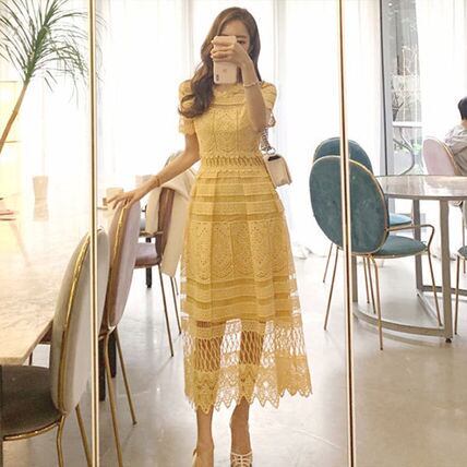 ワンピース ミディアム丈 送料無料 ティアードワンピース パンチングレース クロシェ レース クルーネック シアー シースルー 半袖 袖あり パフスリーブ 袖あり パフスリーブ スクエアネック Aライン かわいい 大人可愛い 大人 上品 おしゃれ お洒落 大人可愛い 大人女子 ラブリー キュート ガーリー 主役級 存在感 とろみ感 オフホワイト ベージュ 無地 春 夏 10代 20代 30代学生 デート お出かけ 女子会 休日 パーティー イベント リゾート トレンド 流行