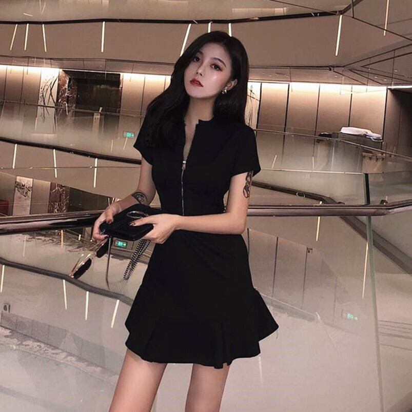 フレア裾のAラインが綺麗なセンタージップのワンピース。