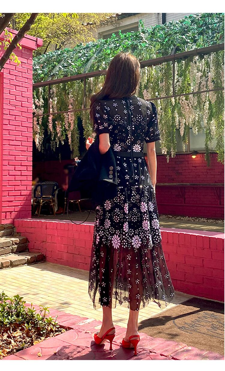 ワンピース レディース 送料無料 シースルーワンピース スパンコール刺繍ワンピース シフォンワンピース ロングワンピース 半袖 おしゃれ エレガント 大人かわいい クラシカルフォーマル 結婚式 二次会 お呼ばれ パーティー 謝恩会 ドレス スタイル 小顔見せ 着痩せ 体形カバー インスタ トレンド きれいめ フェミニン フレアスカート ドレープ ゴージャス ブラック 透け感 シースルー ドレス フラワー 花柄 マキシ丈 チュール レース