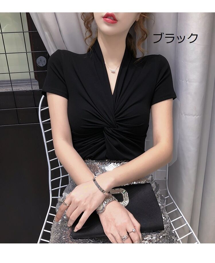 トップス レディース レギュラー丈 ねじりTシャツ ねじり ピッタリTシャツ スタイル Vネック 深いVネック おしゃれ デイリー 無地 セクシー 半袖 ホワイト ブラック イエロー ライトピンク アプリコットブルー グリーン 7色 S M L XL 2XL 春 夏 秋 冬 オールシーズン 韓国 韓国ファッション オルチャン10代 20代 30代 休日 日常 ランチデート ランチ ディナー お出かけ 通勤 オフィス ビジネスシーン ピッタリ タイト ピッタリTシャツ きれいめ 上品 胸元すっきり 送料無料