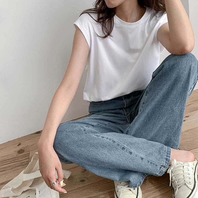 トップス レディース 送料無料 4色 Tシャツ シャツ プルオーバー カットソー フリル クルーネック ラウンドネック 半袖 ノースリーブ カジュアル シンプル ガーリー ラブリー キュート かわいい 可愛い おしゃれ お洒落 こなれ感 抜け感 爽やか 清潔感 涼し 清楚 きれいめ ラフ ゆったり ゆる 楽ちん 大きめ ワイド S M L 春服 夏服 10代 20代 30代 40代 おでかけ デート モテ 通学 学生 休日 散歩 着回し 普段使い 韓国 オルチャン ファッション コーデ 新作 2021