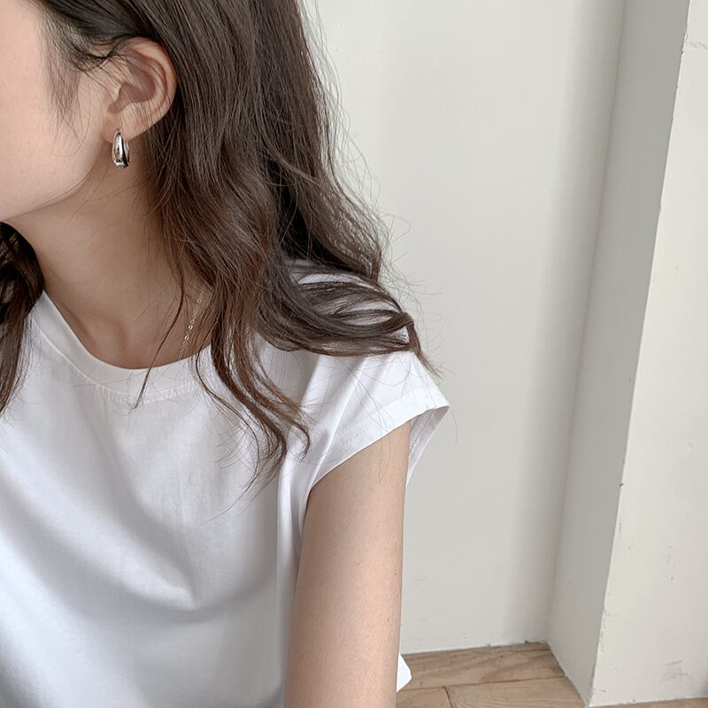 アウターやボトムを選ばないシンプルな仕立てです。