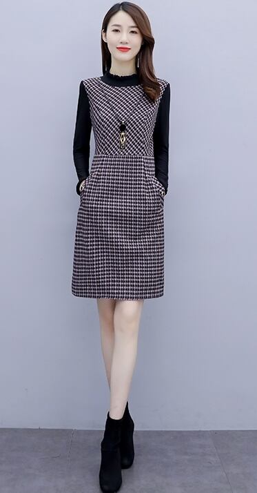 ワンピース レディース 送料無料 タイトワンピース ミディ丈 膝上 立ち襟 スタンドカラー フリル レイヤード 長袖 ラウンドネック 切り替えデザイン ハイウエスト サイドポケット 体型カバー 脚長 美脚 大きめ ビッグサイズ プラスサイズ XL 2XL 3XL 4XL フェミニン 大人可愛い きれいめ 大人女子 おしゃれ お洒落 上品 エレガント こなれ感 リュクス チェック柄 格子柄 春服 秋服 冬服 オフィス ビジネス OL 通勤 通学 学生 デート おでかけ 着回し 普段使い 重ね着 2021