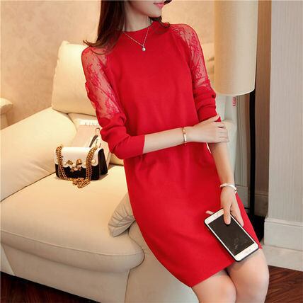 すっきりシルエットのニット仕立てでボディラインを綺麗に演出。