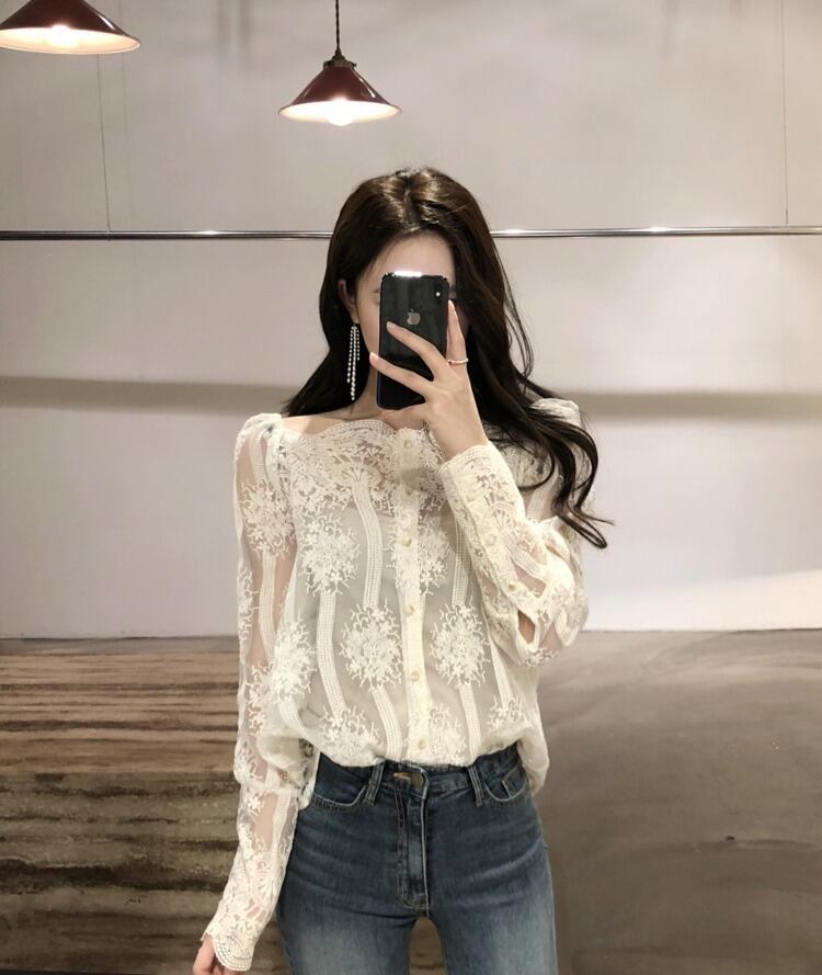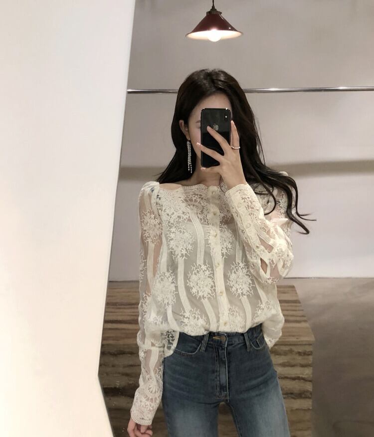 トップス レディース 送料無料 オフショルダー オフネック シャツ ブラウス 刺繍 レース スカラップ襟 長袖 パフスリーブ ノーカラー 透け感 おしゃれ スタイル 小顔見せ 体形カバー インスタ きれいめ エレガント クラシカル フェミニン 透け感 シースルー オフィス 通勤 OL お出かけ リゾート キュート ガーリー かわいいフリーサイズ アイボリー 上品 レース ナチュラル ロマンチック ブラウス 花柄 フラワー柄 ボタニカル柄 フェミニン レーシー フラワーレース バルーンスリーブ