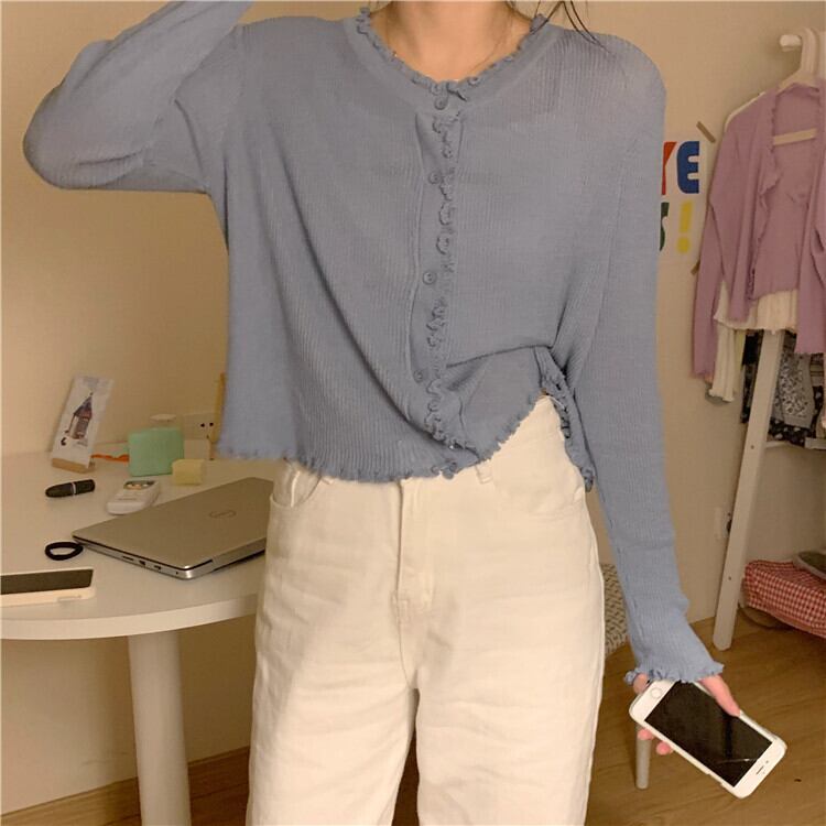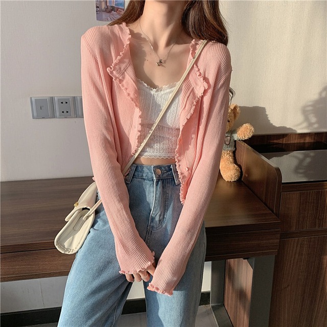 トップス レディース カーディガン 送料無料 カラバリ 8色 ブラック ホワイト イエロー クリームイエロー ピンク パープル ミントグリーン ブルー ウェーブデザインリブカーディガン 地カーディガン クロップド丈カーディガン ショート丈 リブカーディガン ウェーブデザイン フロントボタン 長袖 春 夏 秋 冬 オールシーズン 20代 30代 40代 きれいめ おしゃれ 重ね着 着回し フリーサイズ ワンサイズ カラバリ豊富 ショート丈 透け感 デート ランチ 女子会 公園デビュー 通勤 着心地軽やか