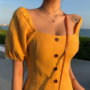 ワンピース ロング 送料無料 フレアワンピース シャーリング オフショルダー スクエアネック 2WAY ボタン パフスリーブ 半袖 襟なし パフスリーブ 袖あり ビッグシルエット オーバーサイズ Aライン かわいい 大人可愛い 大人 上品 おしゃれ お洒落 大人可愛い 大人女子 ラブリー キュート ガーリー 主役級 存在感 とろみ感 オフホワイト ベージュ 無地 春 夏 10代 20代 30代学生 デート お出かけ 女子会 休日 パーティー イベント リゾート トレンド 流行