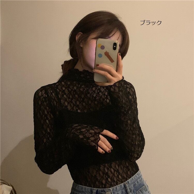 トップス レディース 総レース長袖シャツ 長袖 タイトレースシースルーTシャツ ブラック ホワイト アプリコット 3色 フリーサイズ ワンサイズ 着回し 重ね着 インナー オシャレ 大人 きれいめ レース デート お出かけ ランチ ディナー 20代 30代 40代 春 夏 秋 冬 オールシーズ シースルーシャツ ハイネックTシャツ シースルーインナー レースインナー タイトインナー 海 リゾート ハイネック スリム