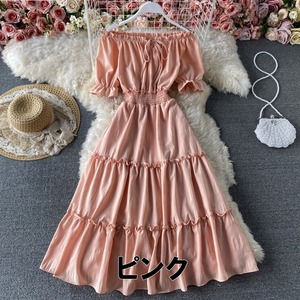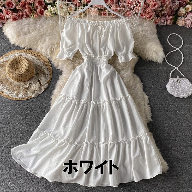 ワンピース ロング 送料無料 7色 シャツワンピース ティアードワンピース シャーリング オフショルダー ウエストギャザー 2WAY パフスリーブ 半袖 襟なし パフスリーブ 袖あり ビッグシルエット オーバーサイズ Aライン かわいい 大人可愛い 大人 上品 おしゃれ お洒落 大人可愛い 大人女子 ラブリー キュート ガーリー 主役級 存在感 とろみ感 オフホワイト ベージュ 無地 春 夏 10代 20代 30代学生 デート お出かけ 女子会 休日 パーティー イベント リゾート トレンド 流行