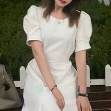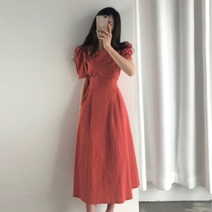 パフスリーブが可愛いフェミニンなフレアワンピース。