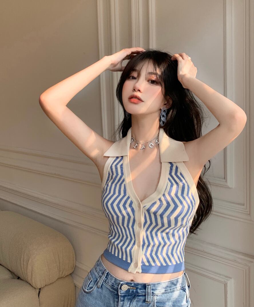 トップス レディース ニット 送料無料 襟付き タンクトップ ニットタンクトップ Vネック バックコンシャス ストライプ 幾何学模様 タンクトップ インナー ノースリーブ スリム タイト 細身 ストレート 大人可愛い きれいめ シンプル カジュアル 大人 上品 おしゃれ お洒落 かっこいい S M L XL ホワイト ブラック ブルー ベージュ ピンク 5色 無地 春 夏 10代 20代 30代 通勤 学生 通学 デート お出かけ 公園デビュー 女子会 お泊まり 休日 楽ちん 送料無料