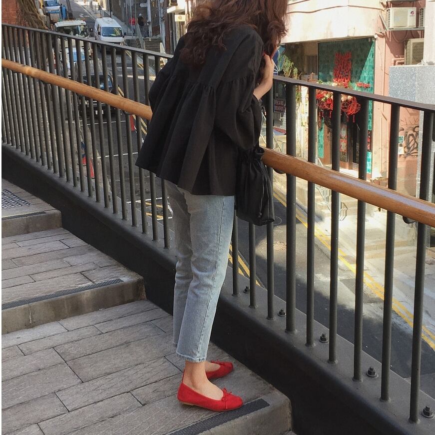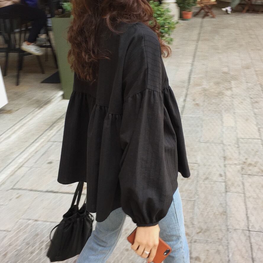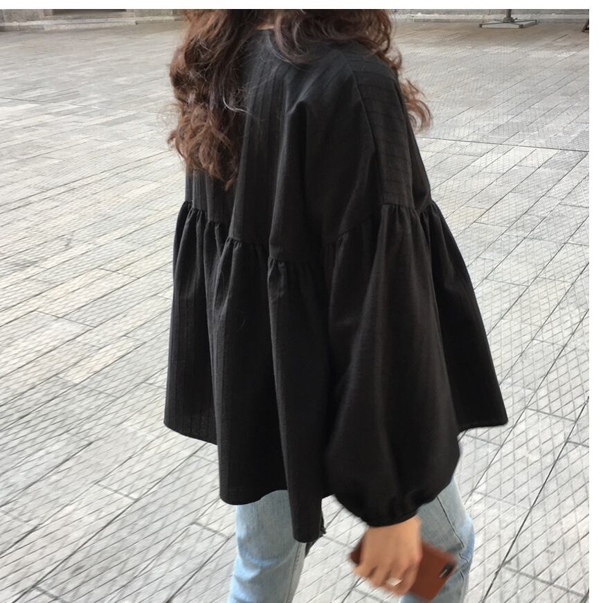 ペプラムシャツでふんわりとした裾が可愛い一着です。