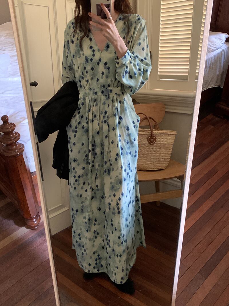 ワンピース ドレス ワンピドレス レディース 送料無料 フレアワンピース ロング ミモレ丈 袖あり 半袖 カシュクール Vネック ダイヤ 幾何学 セミフレア シフォン ウエストマーク ハイウエスト ウエストゴム切り替え 大人可愛い きれいめ シンプル 上品 おしゃれ 大人女子 こなれ感 ラブリー キュート ガーリー エレガント モダン 抜け感 S M L XL 青 ブルー 花柄 小花柄 フラワー ボタニカル 春 夏 秋 10代 20代 30代 デート お出かけ 旅行 海 プール 普段使い 体系カバー