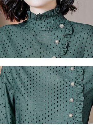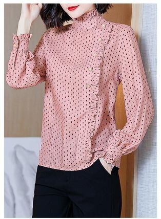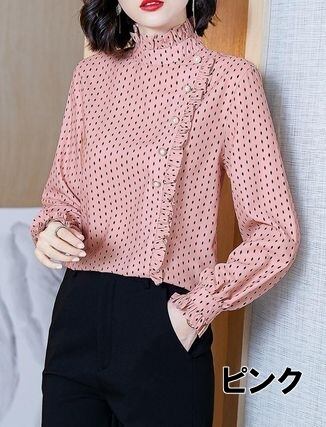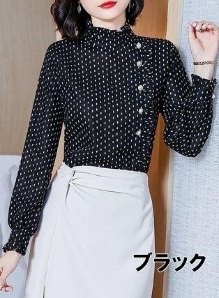 トップス レディース 送料無料 4色 ブラウス シャツ フリル リボンタイ パールボタン ドット レトロ ヴィンテージ 大きいサイズ サイズ豊富 S M L XL 薄手 プリント 黒 ブラック かわいい 大人女子 きれいめ 大人 上品 お洒落 おしゃれ クール こなれ感 ルーズ ゆったり ゆる 着回し 普段使い コーデ ファッション 体型カバー 楽ちん デート お出かけ 休日 10代 20代 30代 学生 春 夏 韓国 オルチャン
