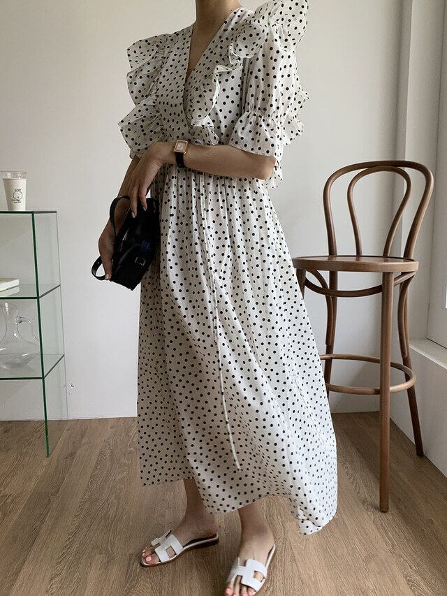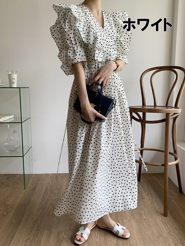 ドットがフェミニンなシフォンワンピース